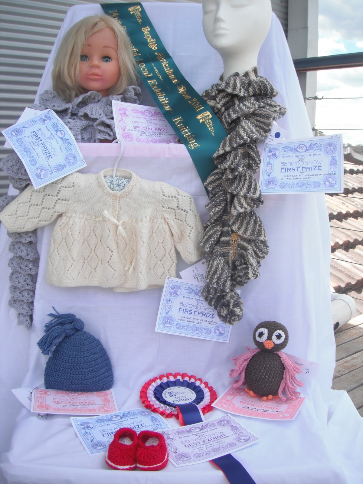 I take out the Most Successful Local Exhibitor -Knitting for the year 2011 This is awarded on a point system according to what places you get. Hopefully on my next post i can show you some of my daughters work as well as the photo my son entered You can see more of my work in my Etsy Store madwestdesigns on Etsy and facebook madwestdesigns on facebook My items are also sold at viewpoint handemade gallery Or i can be contacted by email madwestdesigns@gmail.com |